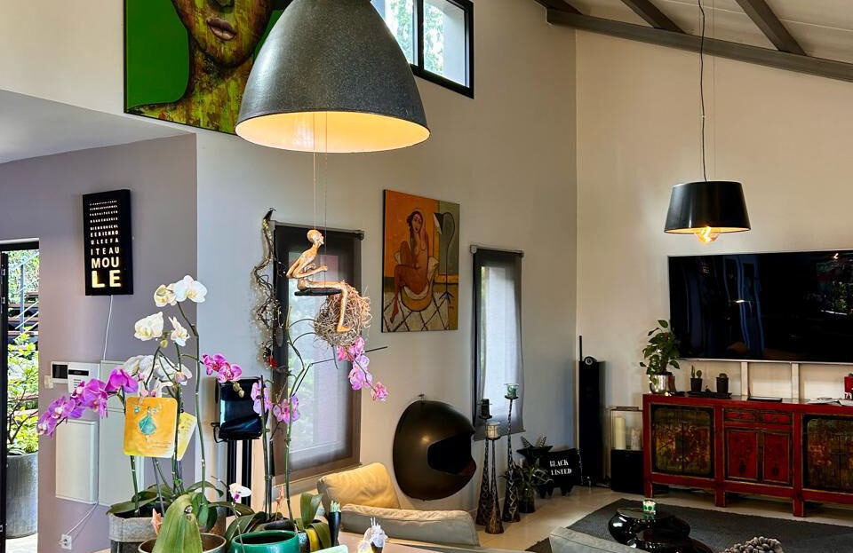 Maison atypique située sur les hauteurs de Saint Leu, offrant une vue mer imprenable et un magnifique jardin arboré.